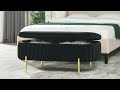 Add a chic modern accent to any room in the home lacking in storage with the Chloe Bench Collection by Sandy Wilson Home. The beautifully upholstered oval-shaped bench is accented with vertical tufting all around and complemented with sleek gold legs. The generous storage area is perfect for keeping extra throw blankets and pillows, shoes, or other Knick knacks out of sight.