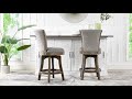 The Henry Swivel Bar Stool Collection by Jennifer Taylor Home puts a spin on that classic bar stool flair. Featuring a convenient 360-degree swivel seat complete with a plush upholstered backrest and convenient foot rest, these oak bar stools capture that natural farmhouse vintage chic with a textured wood frame in a rich stain. Available in a 27” counter seat height, the Henry lets you wine and dine in comfort whether it’s at your in-home pub table or kitchen counter. A brass kickplate is included on the ringed footrest to preserve and protect the style of your stool.