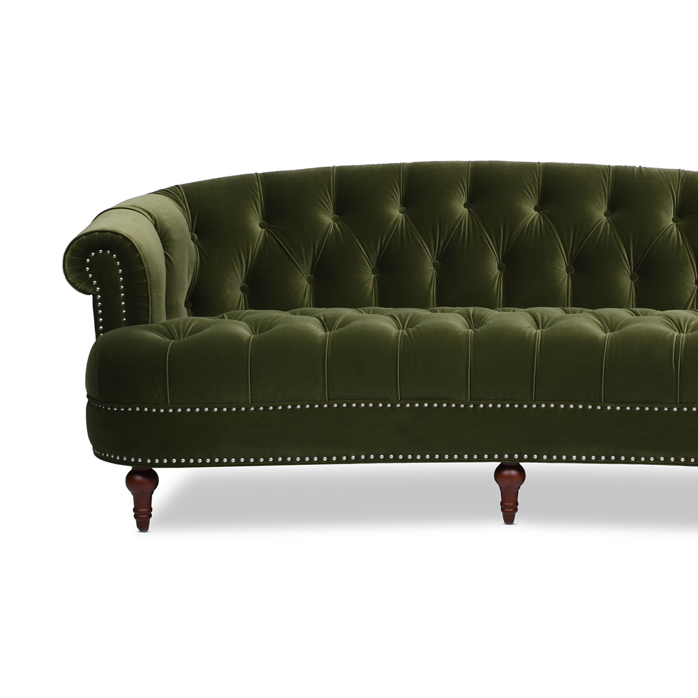 - True hand-gathered button tufting all along the front seat and arms