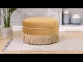 The Yolanda Ottoman Collection by Jennifer Taylor Home is a stylish and multi-functional furnishing suitable for any part of the home. Use the ottoman as a footrest, side table, or extra seating in a pinch. The tassel rope fringe coordinates with the rich array of upholstery fabrics, and is a perfect touch of vintage chic.